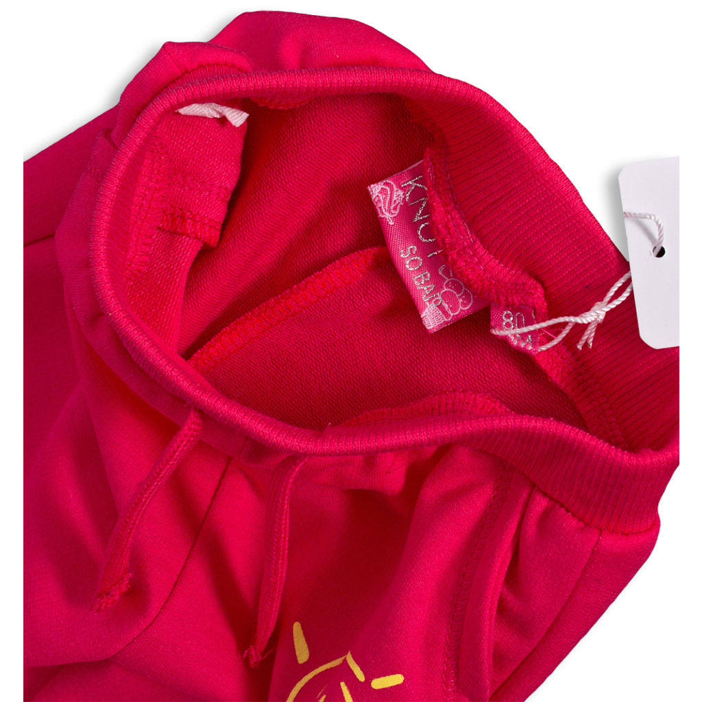 Tepláky pro holčičky s potiskem sluníčka. V pase guma, tkanička přišitá. Falešné kapsy. Pružné lemy na nohavicích. Příjemný úplet, z rubu bez chloupku.Doplňkové parametry