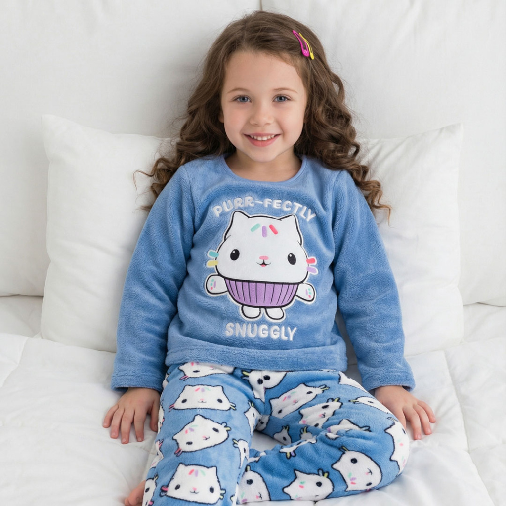 Hřejivé dívčí termo pyžamo s kočičkou ze seriálu Gábinčin kouzelný domek. Měkký, hřejivý, hebký materiál, jemný chloupek.