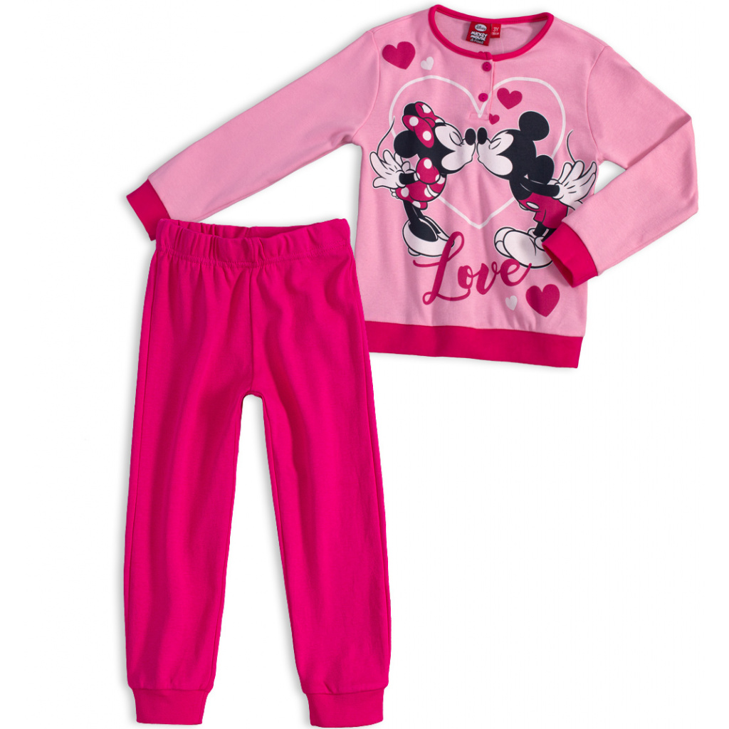 Dívčí pyžamo s licenčním obrázkem MICKEY MOUSE. Teplý bavlněný úplet, u obou dílů z rubu česaná bavlna. Kalhoty v pase na gumu, s pružnými náplety na nohavicích.