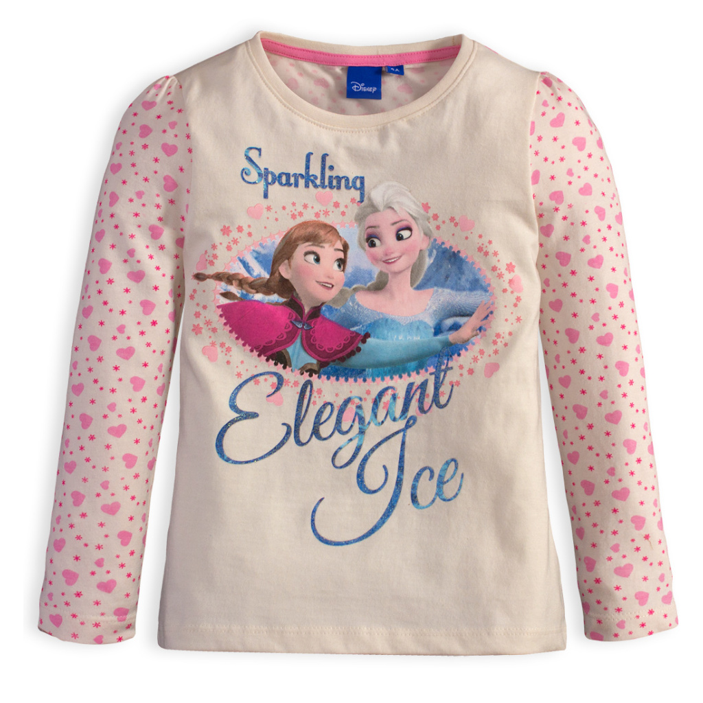 Dívčí tričko s dlouhým rukávem. Licenční obrázek z kolekce Disney Ledové království. Příjemný, pružný úplet. Prodloužený zadní díl.Doplňkové parametry