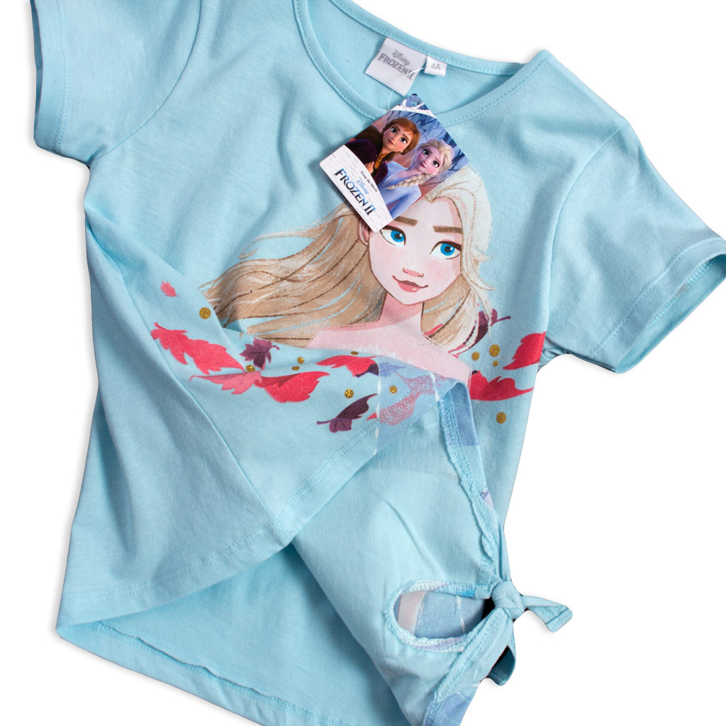 Tričko s krátkým rukávem s Elsou z Ledového království II. Ozdobné zavázání. Pohodlný bavlněný úplet.
