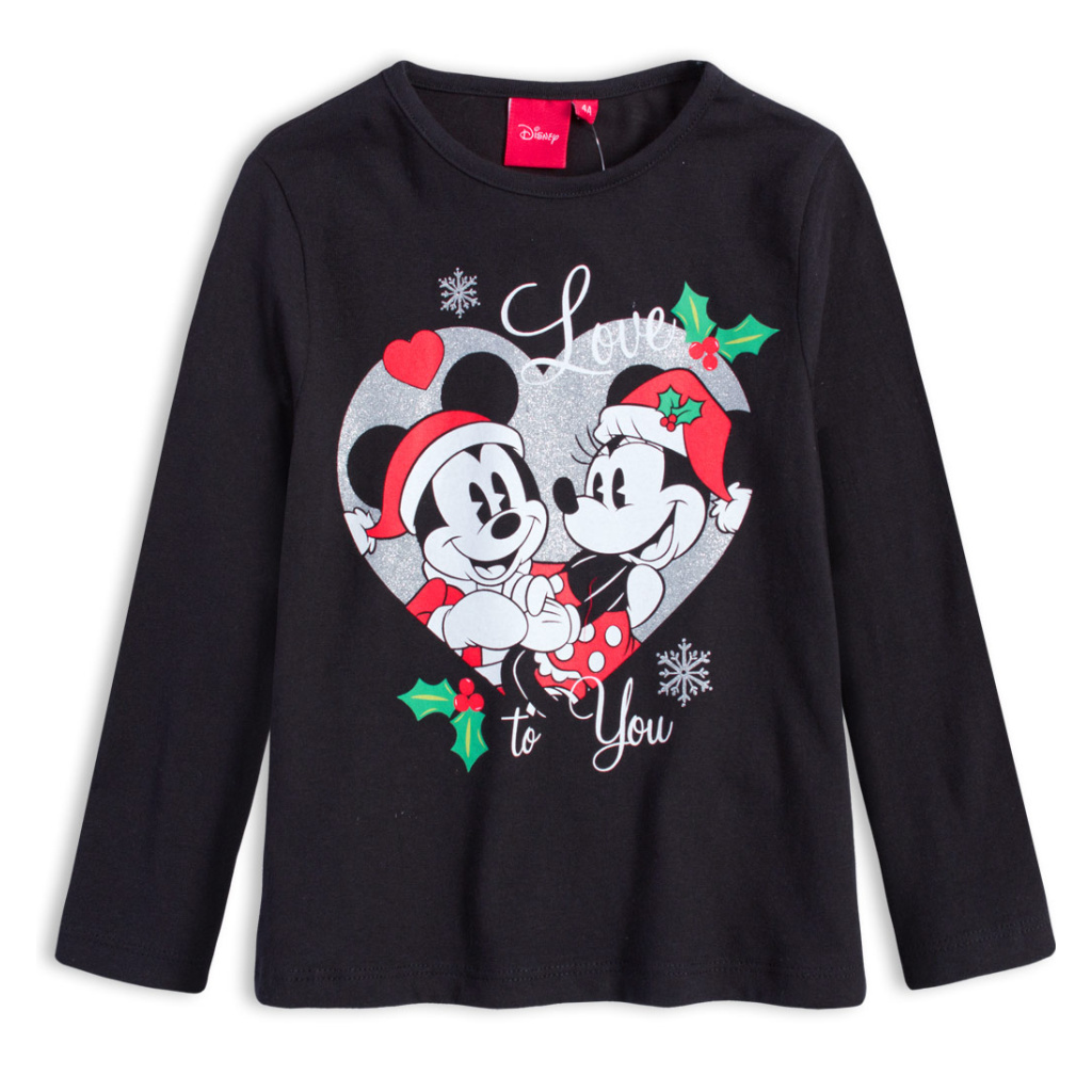Krásné tričko s myškou Minnie a Mickey Mousem, s vánočním motivem. Dlouhý rukáv, příjemný bavlněný úplet. Roztomilý potisk.