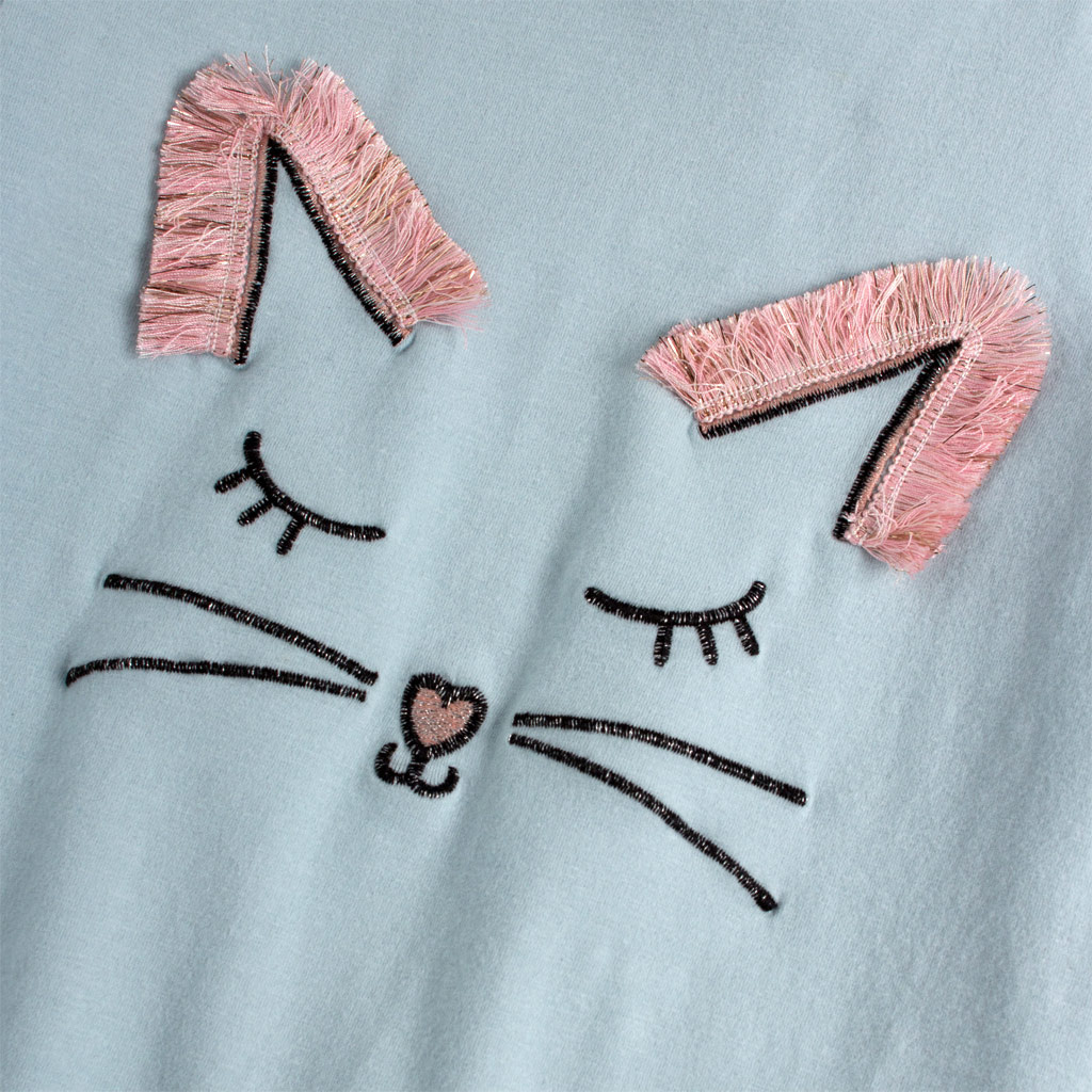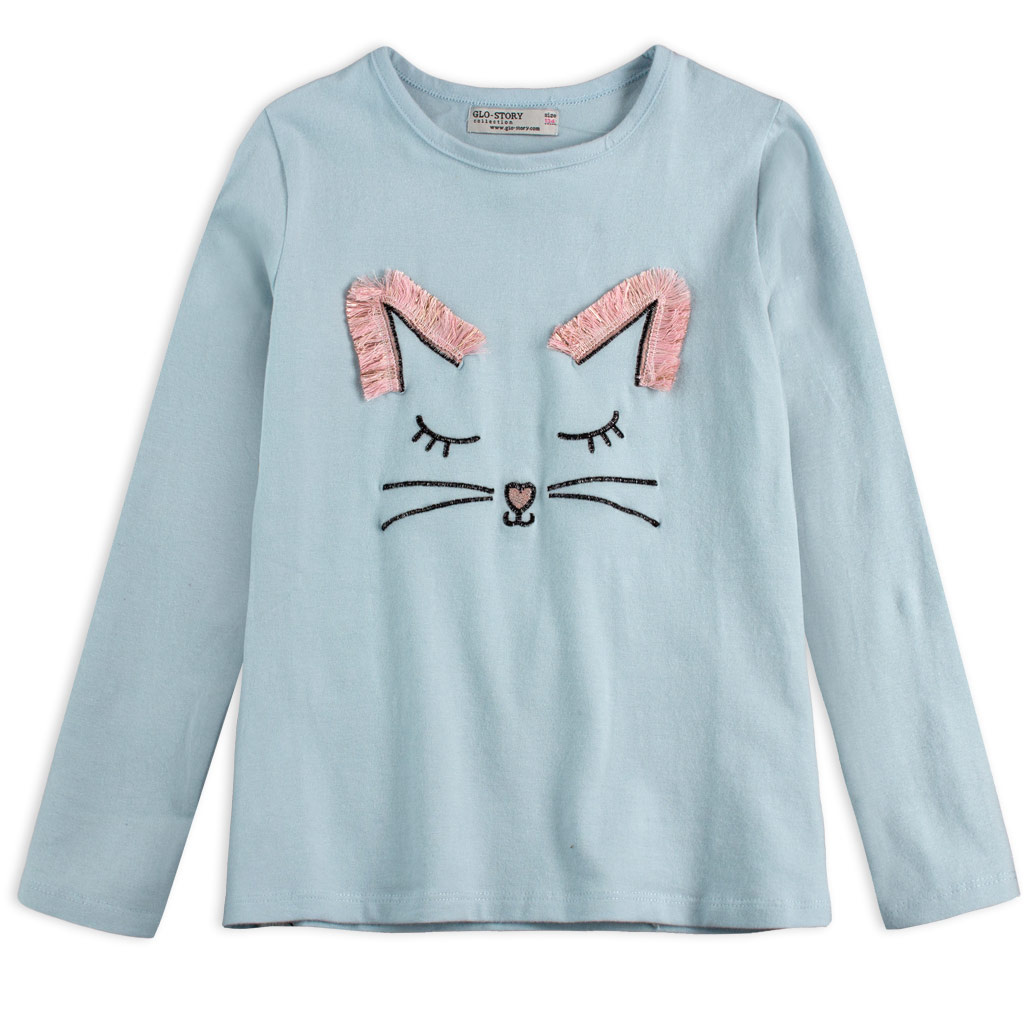 Dívčí tričko s dlouhým rukávem. Vyšitá aplikace s jemnými třásněmi. Příjemný, hodně pružný materiál.