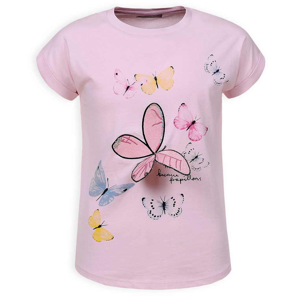 Dívčí triko s krátkým rukávem, s romantickým potiskem motýlů. Příjemný materiál.