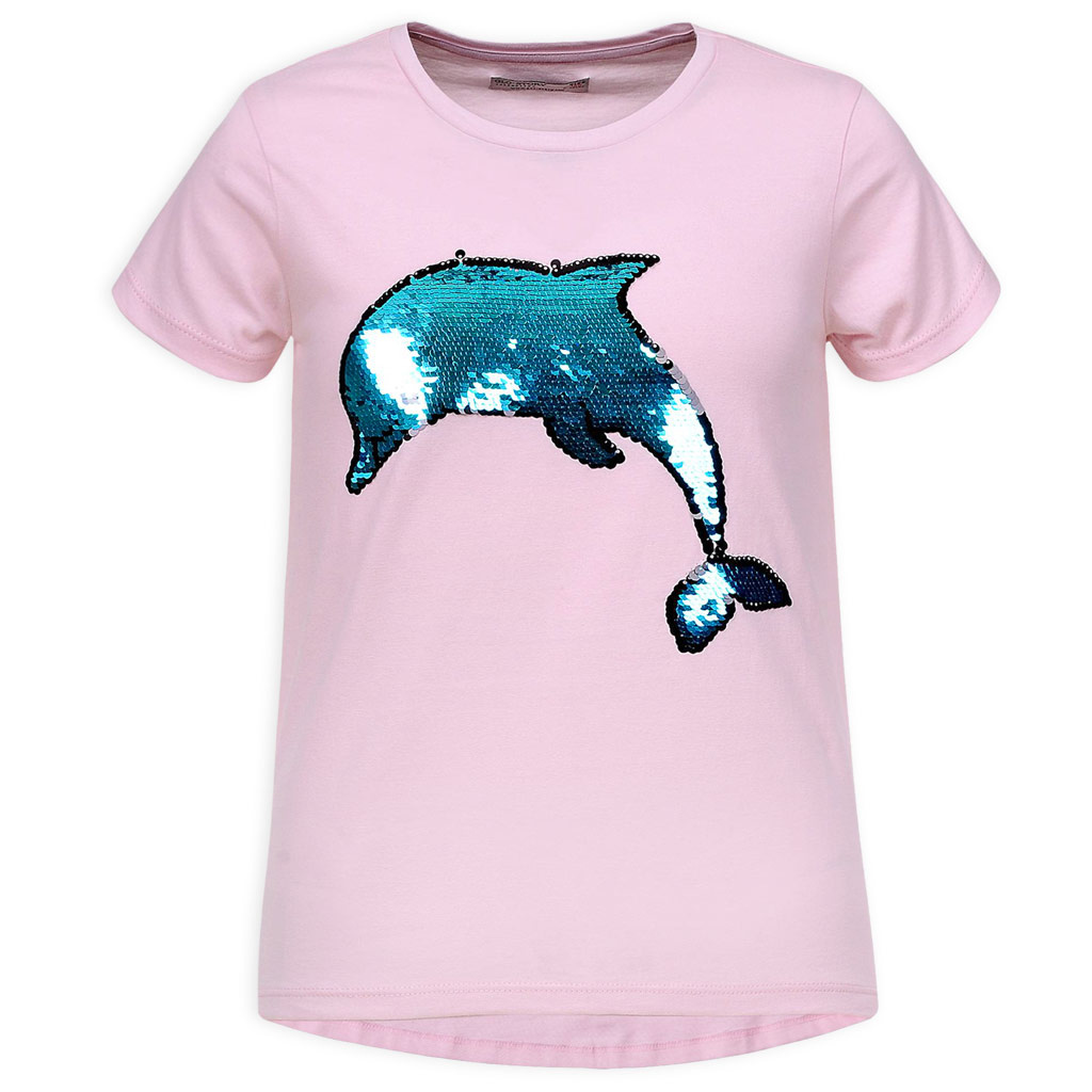 Stylové tričko s krátkým rukávem, s aplikací delfína z překlápěcích flitrů. Příjemný bavlněný úplet zaručí pohodlné nošení.