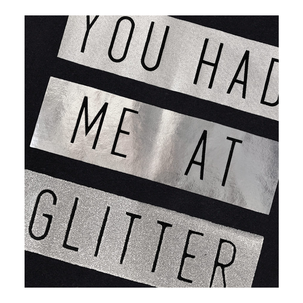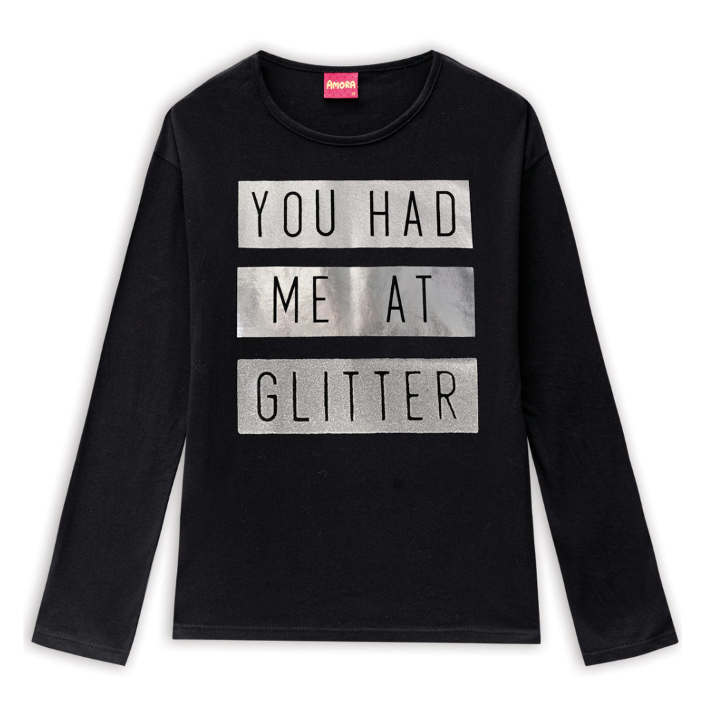 Skvělé tričko pro slečny. Trendy třpytivý stříbrný nápis na příjemném, pružném úpletu.