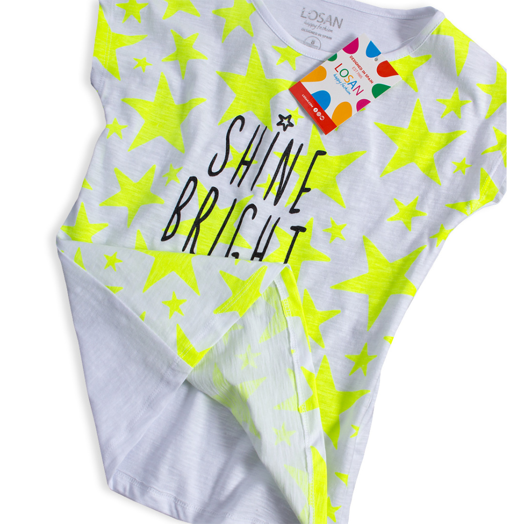 Dívčí tričko LOSAN HVĚZDY bílé neon potisk