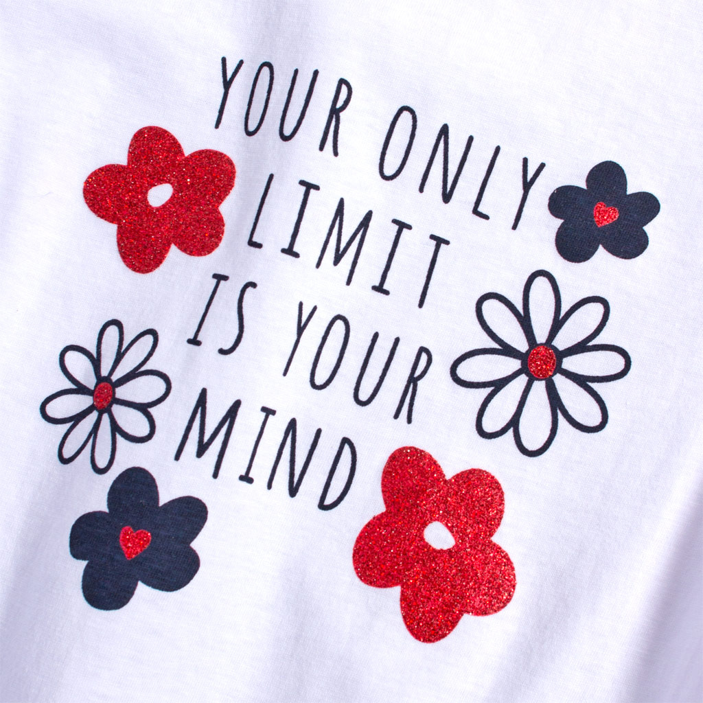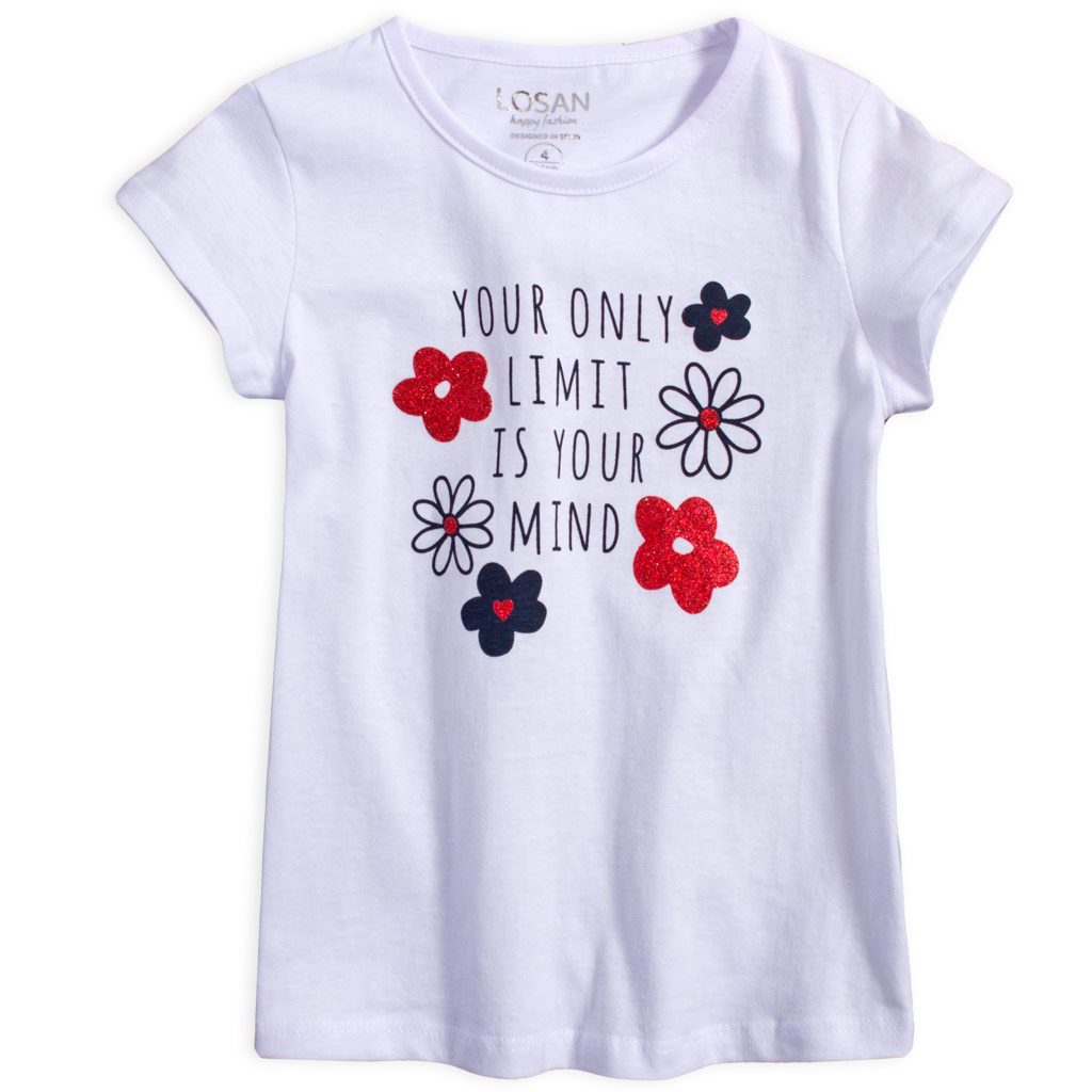 Dívčí tričko s krátkým rukávem. Španělská značka LOSAN. S potiskem kytiček a nápisem. Pružný bavlněný úplet.
