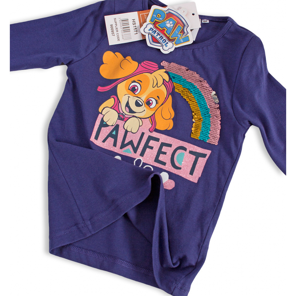Dívčí triko s dlouhým rukávem. Licenční potisk Nickeldeon Tlapková patrola. Aplikace duhy z překlápěcích flitrů. Pružný bavlněný úplet.Doplňkové parametry