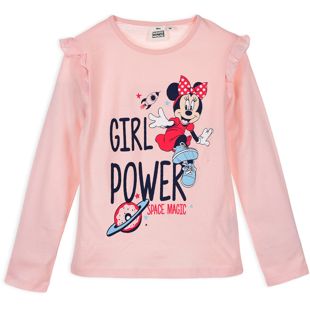 Dívčí tričko s dlouhým rukávem vyrobené z příjemné bio bavlny. Barevný obrázek myšky Minnie. Na ramenou ozdobný volánek.