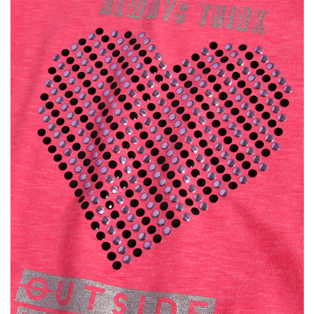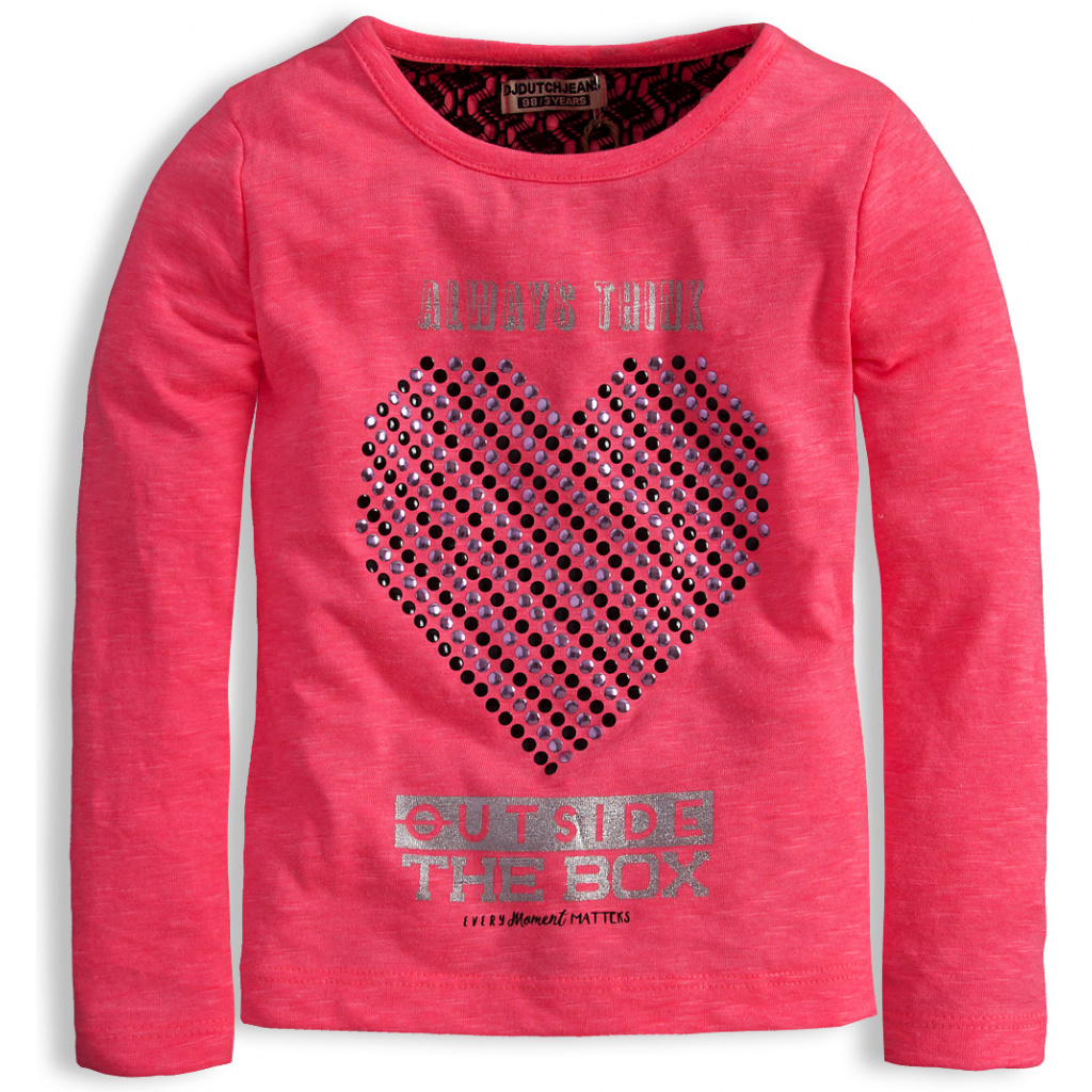 Dívčí triko s dlouhým rukávem. Lesklý potisk a aplikace srdíčka. Příjemný úplet.