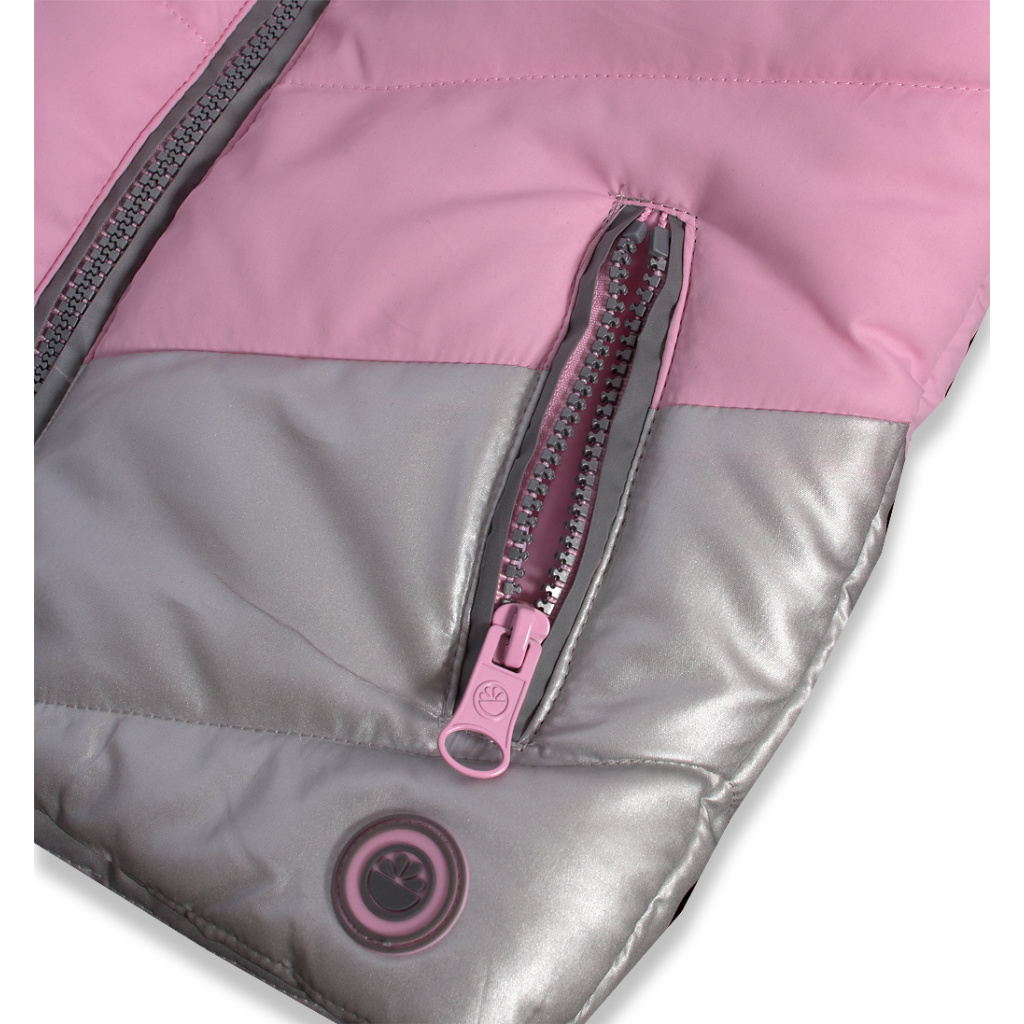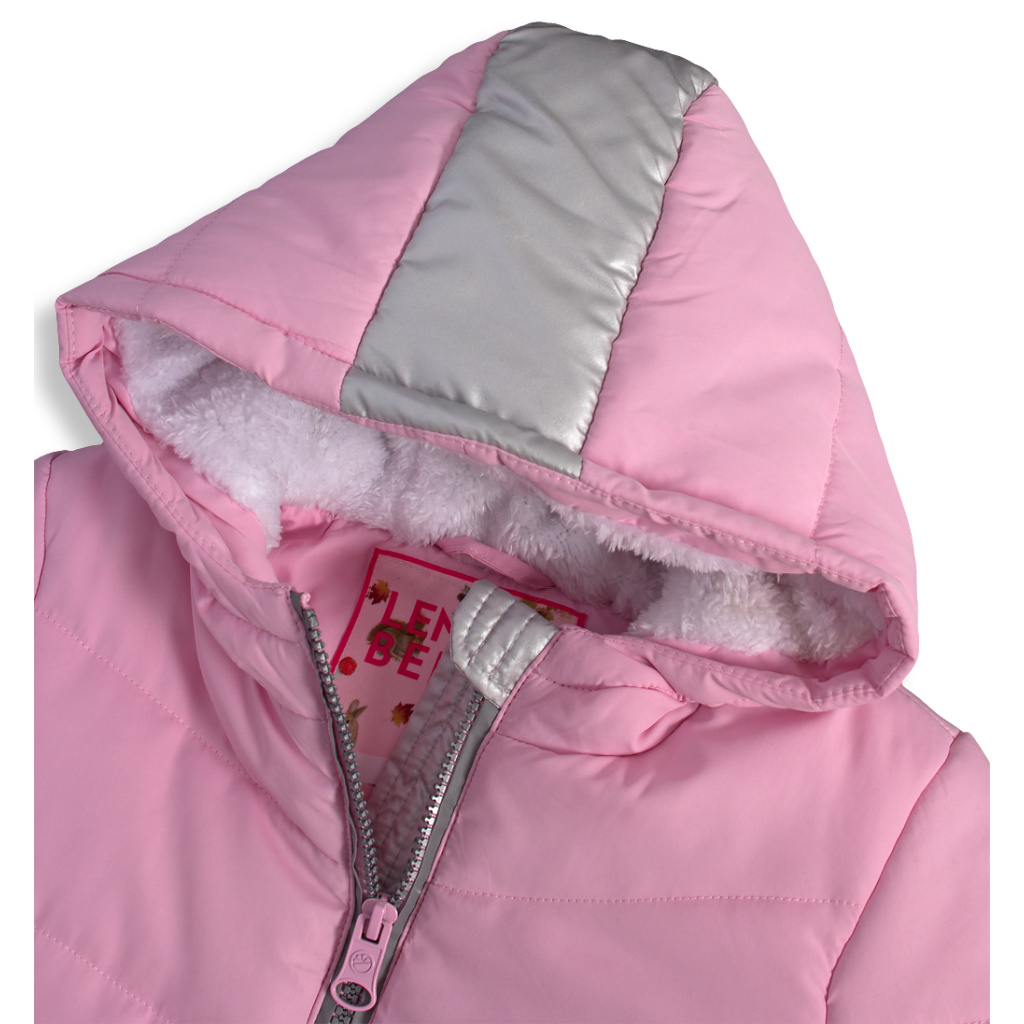 Prošívaná dívčí zimní bunda s kapucí. Rukávy s vnitřním pružným lemem. Praktické kapsy se zapínáním na zip. Uvnitř náprsní kapsa se suchým zipem. Podšívka z jemného kožíšku. V rukávech šusťák.Doplňkové parametry