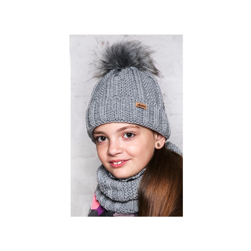Dívčí zimní čepice s nákrčníkem DASTEL CASTING šedá