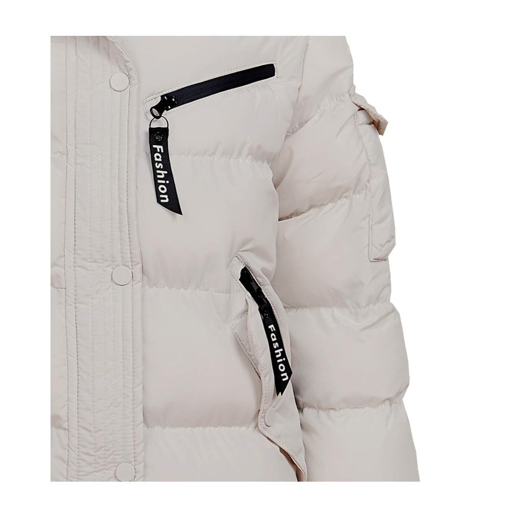 Prošívaný dívčí zimní kabát. Kapuca má odepínací kožíšek. Praktické hluboké kapsy. Nad nimi falešný zip. Rukávy mají vnitřní pružný lem. Po těle podšívka z kožíšku. Hřejivá výplň.