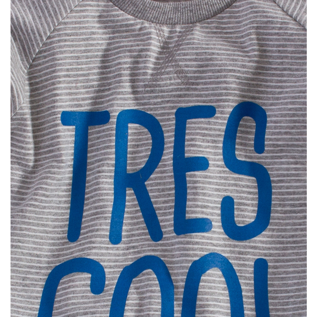 Tenčí chlapecká mikina. Potisk na předním dílu, ozdobné prošití u krku. Jemný, oboustranně hladký, kvalitní, bavlněný úplet.Doplňkové parametry