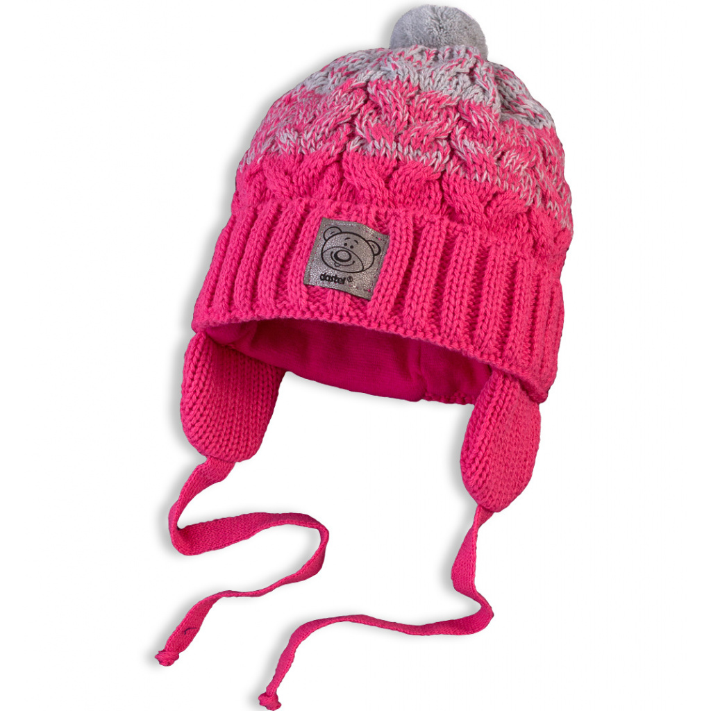 Kojenecká zimní čepice s bambulí DASTEL MEDVÍDEK růžová
