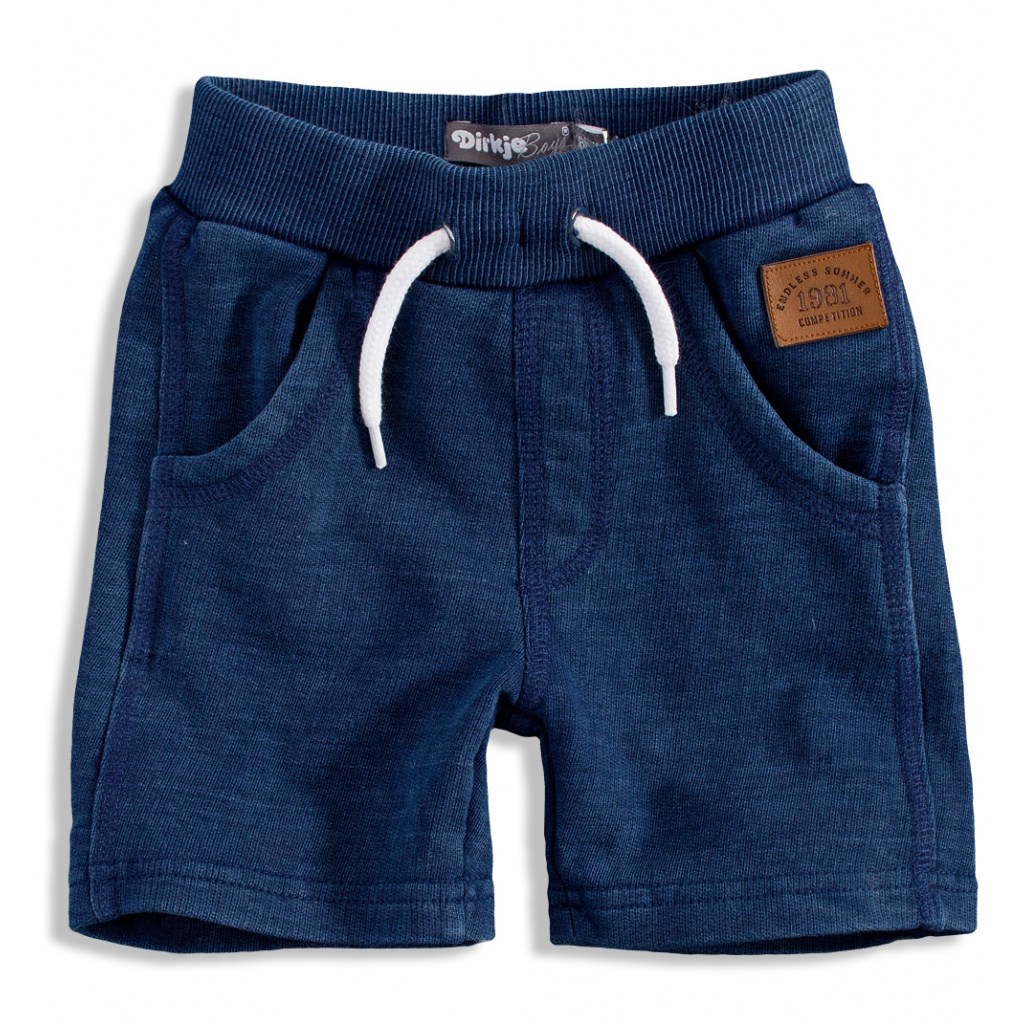 Kraťasy z bavlněného úpletu. V pase guma. Tkanička ozdobná. Vpředu kapsy. Malá nášivka.