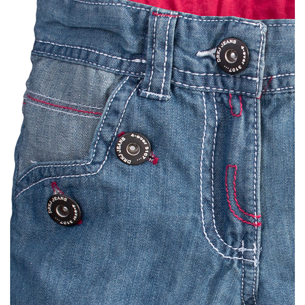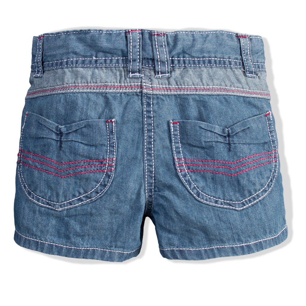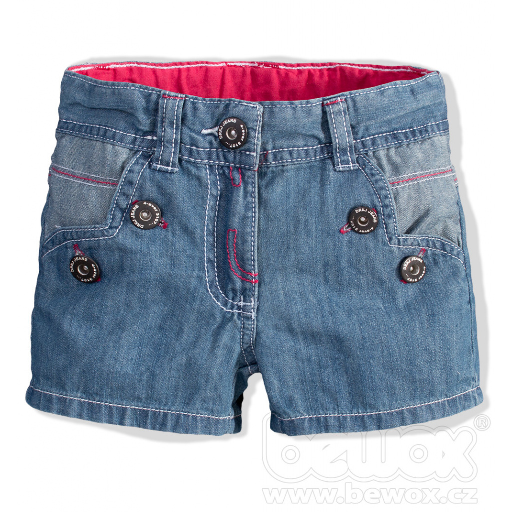 Dívčí šortky z tenké džínoviny. Ozdobné barevné prošívání a knoflíky, zapínání na zip.Doplňkové parametry