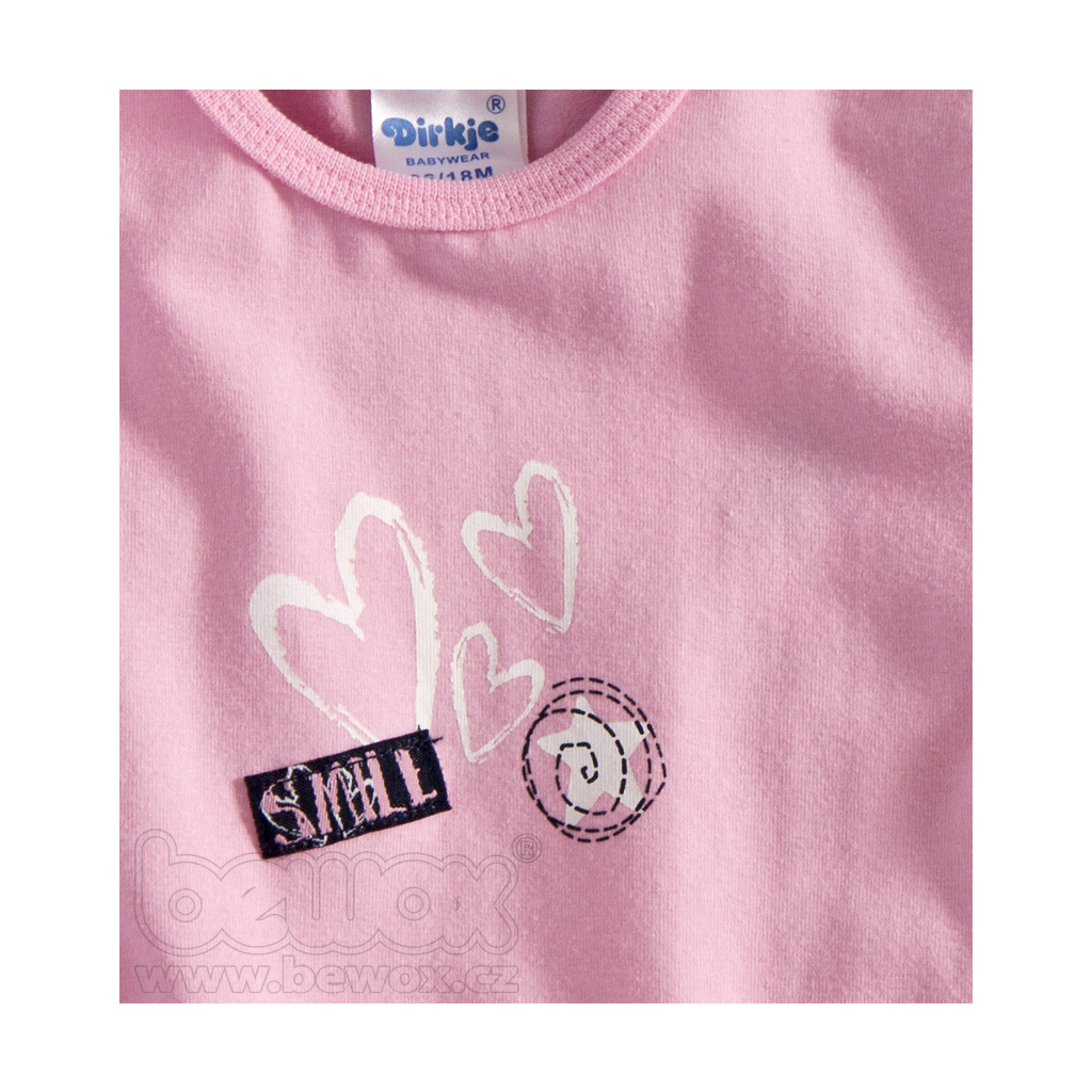 Kojenecké tričko holandské značky Dirkje s jemným potiskem. Velmi příjemný materiál s podílem elastanu. Zapínání na patentky na rameni.