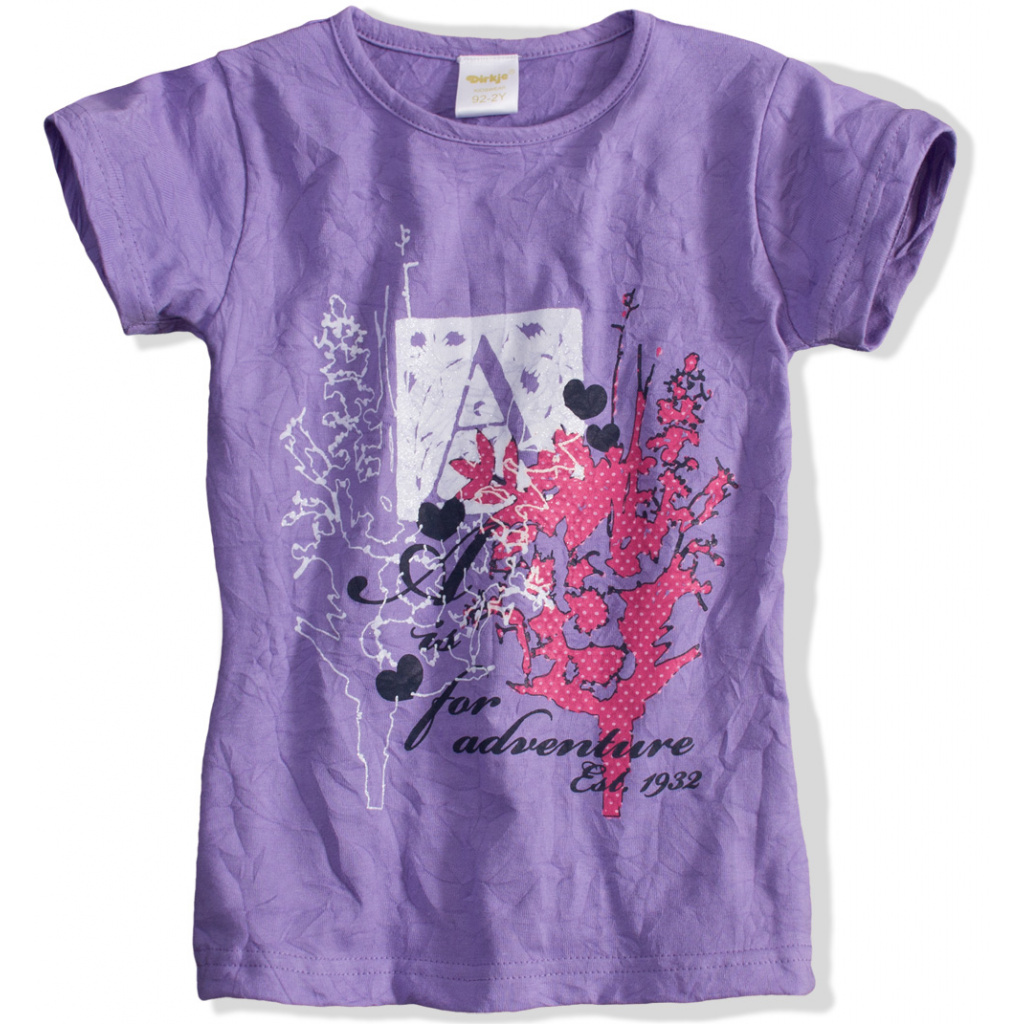 Dívčí tričko s krátkým rukávem. Bavlněný úplet s módním efektem pomačkání. Barevný potisk.