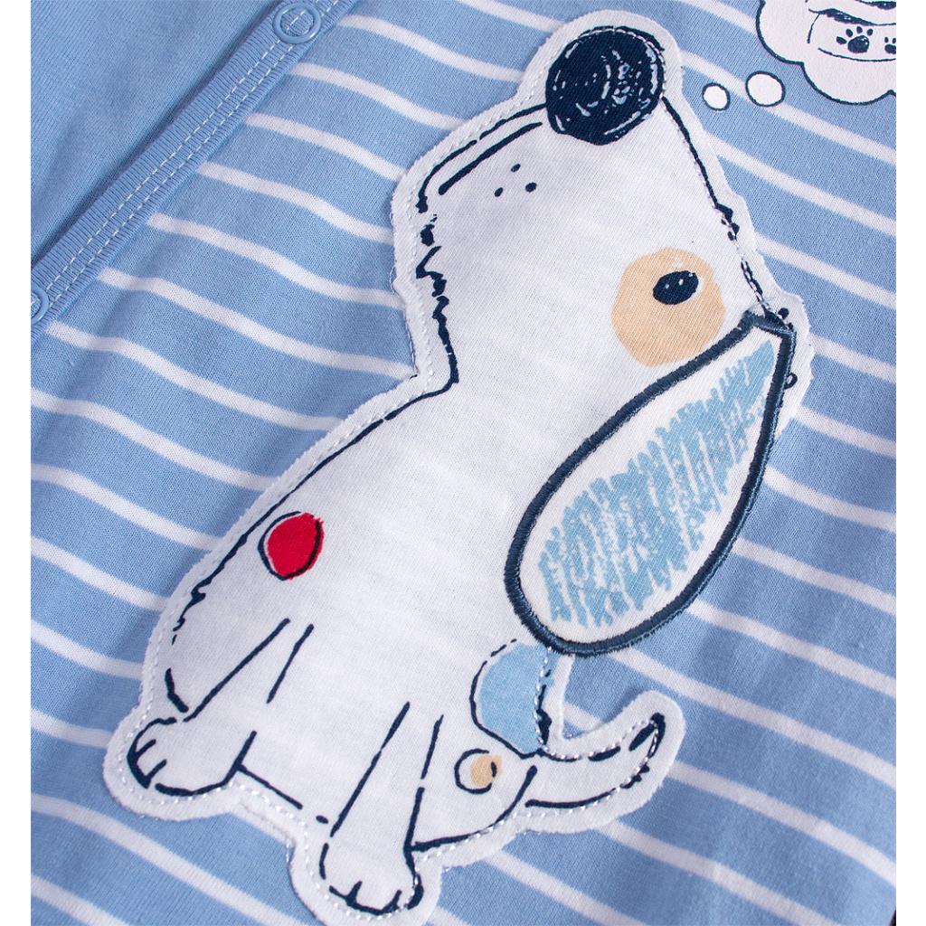 Bavlněný kojenecký overal s našitou aplikací. Zapínání na patentky po celé délce. Příjemný, měkký úplet.Doplňkové parametry