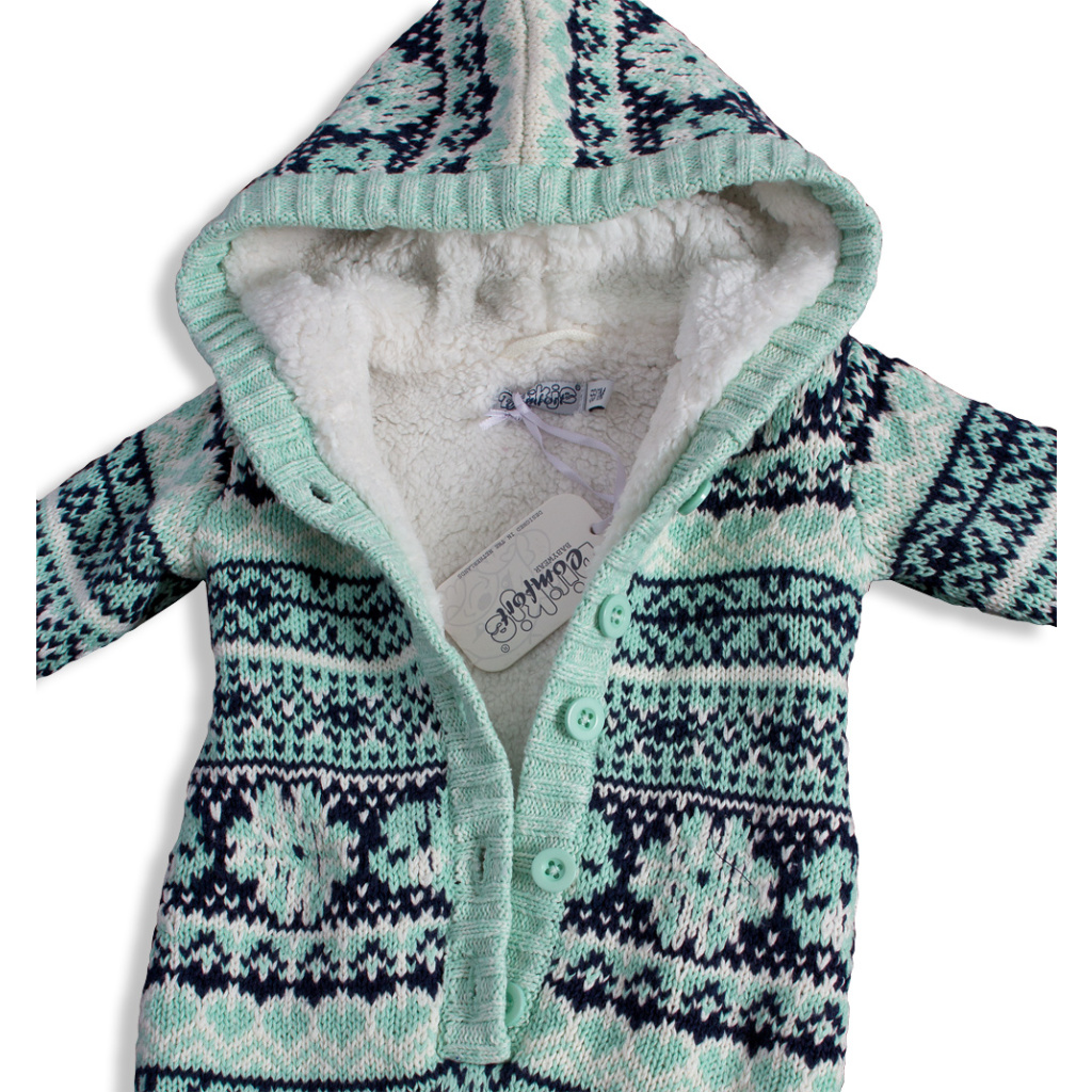 Pletený teplý overal s norským vzorem. Podšitý kožíškem. V rukávech šusťák pro snadější oblékání. Zapínání vpředu na knoflíky.Doplňkové parametry
