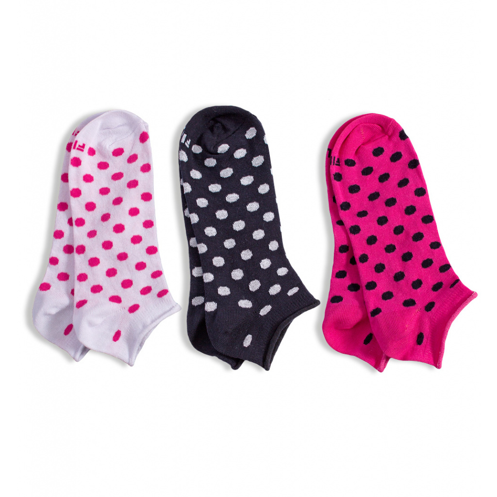 Balení 3 párů kotníkových ponožek s puntíčky. Jemný, nesvíravý lem.