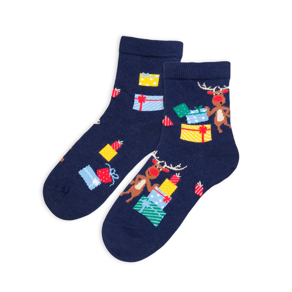 Ponožky s vypleteným vzorem, s veselým vánočním motivem. Příjemný materiál, dobře drží na nože. Certifikát zdravotní nezávadnosti OEKO-TEX.
